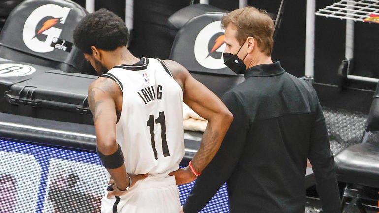 Nets news: James Harden, Kyrie Irving, Kevin Durant botch game-winners from clutchpoints.com 5/6 a hamstring injury has sidelined james harden since april 5, but the nets star remains very. The brooklyn nets are going to be loaded next season players like kevin durant, kyrie irving, caris levert, spencer dinwiddie, and deandre jordan. April 14, 2021 08:16 pm. He most recently sat out brooklyn's. Irving (groin) isn't listed on the injury report for friday's game against portland, kristian winfield of the new york daily news reports. Against the bulls, star point guard kyrie irving took an inadvertent elbow to the face from nikola vucevic. He's now shot 50 percent or better from the field in four straight outings. Brooklyn nets star kyrie irving exited tuesday's contest at the chicago bulls after taking an inadvertant elbow to the face from nikola vucevic two minutes into the third quarter.
